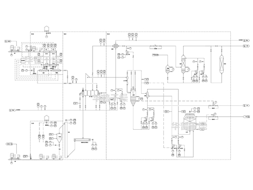 • 噴霧干燥系統(tǒng)+回轉焙燒爐系統(tǒng)+冷卻輸送系統(tǒng)
